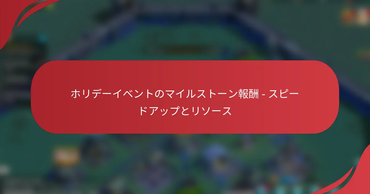 ホリデーイベントのマイルストーン報酬は、Rise of Kingdomsのようなゲームでの期間限定イベント中に特定の目標を達成することでプレイヤーに提供されるエキサイティングな報酬です。これらの報酬には、ゲームプレイや進行を大幅に向上させる貴重なスピードアップやリソースが含まれており、プレイヤーが戦略や効率を最適化できるようになります。 ホリデーイベントのマイルストーン報酬とは? ホリデーイベントのマイルストーン報酬は、Rise of Kingdomsのようなゲームでの期間限定イベント中に特定の目標を達成することでプレイヤーが得られる報酬です。これらの報酬には、ゲームプレイや進行を向上させる貴重なスピードアップやリソースが含まれています。 ゲームにおけるマイルストーン報酬の定義 ゲームにおけるマイルストーン報酬とは、プレイヤーが特定の成果を達成したり、指定された期間内にタスクを完了したりした後に受け取る報酬を指します。これらのマイルストーンは、プレイヤー間のエンゲージメントや競争を促進し、イベントに積極的に参加するためのインセンティブを提供します。 Rise of Kingdomsを含む多くのゲームでは、これらの報酬は階層化されており、プレイヤーが達成するマイルストーンが多いほど、より良い報酬を受け取ることができます。この構造は、プレイヤーが限界を押し広げ、イベント中のパフォーマンスを最大化する動機付けとなります。 報酬の種類:スピードアップとリソース マイルストーン報酬の主な種類はスピードアップとリソースです。スピードアップは、プレイヤーが建設、訓練、または研究の時間を短縮できるようにし、効率を大幅に向上させます。これは、特に他のプレイヤーと競争しているときの激しいゲームプレイの期間中に重要です。 スピードアップ: これらはイベントや達成したマイルストーンに応じて数分から数時間までの範囲です。 リソース: 一般的なリソースには、食料、木材、石、金が含まれ、さまざまなゲーム内活動に必要です。 スピードアップとリソースの両方は、プレイヤーの戦略において重要な役割を果たし、迅速な進展と将来の課題へのより良い準備を可能にします。 ゲームプレイにおけるマイルストーン報酬の重要性 マイルストーン報酬は、プレイヤーに進行を早めるための重要なツールを提供することで、ゲームプレイに大きな影響を与えます。スピードアップの利用可能性は、対戦相手よりも重要なアップグレードを完了するか、遅れを取るかの違いを生むことがあります。 さらに、これらの報酬を通じて得られるリソースは、プレイヤーが軍隊を構築・維持し、構造物をアップグレードし、研究を行うのに役立ちます。これにより、よりダイナミックで競争的な環境が生まれ、プレイヤーがゲームにより深く関与することを促します。 Rise of Kingdomsにおけるホリデーイベントの概要 Rise of Kingdomsにおけるホリデーイベントは、年間を通じてさまざまなホリデーを祝う特別な期間限定のイベントです。これらのイベントでは、プレイヤーが独占的な報酬を得るために完了できるユニークなチャレンジ、タスク、マイルストーンが用意されています。 これらのイベント中、プレイヤーはテーマに沿った装飾、特別なクエスト、強化された報酬を見ることができ、参加がより魅力的になります。イベントはコミュニティのエンゲージメントと興奮を促進するように設計されており、しばしば現実のホリデーと重なります。 ホリデーイベントの期間とルール ホリデーイベントは通常、数日から数週間の限られた期間続きます。各イベントには特定の開始日と終了日があり、プレイヤーが準備できるように事前に発表されます。 参加ルールはイベントによって異なる場合がありますが、一般的にはプレイヤーが報酬を得るために特定のタスクを完了したり、特定のマイルストーンに到達したりすることが求められます。プレイヤーは、潜在的な報酬を最大化し、取り逃がさないようにイベントの詳細を把握しておくことが重要です。 プレイヤーはホリデーイベント中にどのようにマイルストーン報酬を得ることができますか? プレイヤーは、進行に寄与する特定の活動に参加することでホリデーイベント中にマイルストーン報酬を得ることができます。これらの活動には、タスクの完了、リソースの収集、イベント用に設計されたチャレンジへの参加が含まれます。 ホリデーイベントに参加するためのステップ ホリデーイベントに参加するには、まずイベントの発表を確認し、利用可能なタスクやチャレンジの詳細を把握する必要があります。この情報には、イベントの期間や達成すべき特定のマイルストーンが含まれます。 次に、プレイヤーはタスクを完了するために必要なリソースやツールを確保する必要があります。これには、材料を集めたり、チャレンジのためにキャラクターを準備したりすることが含まれる場合があります。 最後