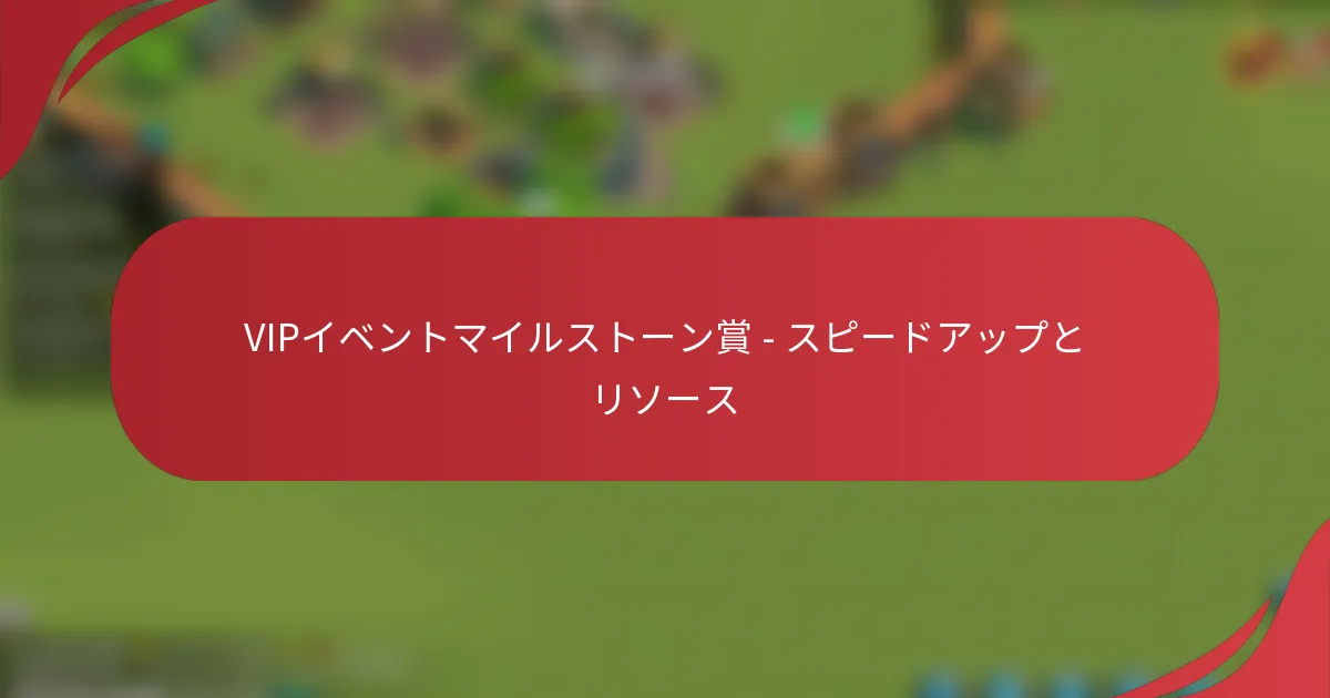 VIPイベントのマイルストーン報酬は、特別なイベント中に特定の目標を達成することでプレイヤーが得られる貴重な報酬です。これらの報酬は、スピードアップや重要なリソースで構成されており、ゲームの進行と効率を大幅に向上させることができます。リソースを戦略的に管理し、コミュニティと協力することで、プレイヤーは報酬を最大化し、全体的なゲーム体験を向上させることができます。 スピードアップとリソースのためのVIPイベントマイルストーン報酬とは? VIPイベントマイルストーン報酬は、特別なイベント中の成果に基づいて参加者に与えられる報酬です。これらの報酬には通常、スピードアップやゲームの進行と管理を助けるさまざまなリソースが含まれます。 VIPイベントマイルストーン報酬の定義 VIPイベントマイルストーン報酬は、指定されたイベント中に特定の目標に到達したプレイヤーに提供されるインセンティブです。これらのマイルストーンは難易度が異なり、積極的な参加と関与を促すように設計されています。これらの目標を達成したプレイヤーは、ゲームプレイ体験を向上させる貴重なアイテムで報われます。 これらの報酬には、プレイヤーが進行を加速できるスピードアップや、建物の建設やアップグレードに必要なリソースが含まれます。これらのイベントの構造は通常、複数の階層を含み、高いマイルストーンにはより良い報酬が用意されています。 リソース管理におけるスピードアップの重要性 スピードアップは、プレイヤーがタスクをより迅速に完了できるようにすることで、リソース管理において重要な役割を果たします。これにより、建物のアップグレード、部隊の訓練、研究の待機時間を大幅に短縮でき、プレイヤーは戦略をより効率的に進めることができます。競争の激しい環境では、迅速に行動できる能力が大きなアドバンテージを提供します。 スピードアップを効果的に活用することで、プレイヤーはリソースの配分を最適化できます。たとえば、重要なアップグレードやイベントのためにスピードアップを保存することで、長期的により良い結果を得ることができます。プレイヤーは、特にゲームの重要な瞬間において、これらのスピードアップを使用するタイミングを考慮する必要があります。 VIPイベントで授与されるリソースの種類 VIPイベントでは、ゲームプレイに不可欠なさまざまなリソースが授与されます。一般的なリソースの種類には以下が含まれます: 食料 木材 石材 鉄 金 これらのリソースは、建設、部隊の訓練、研究の実施に使用できます。授与されるリソースの具体的な種類と量は、イベントや達成されたマイルストーンに基づいて異なるため、プレイヤーは参加を戦略的に考えることが重要です。 VIPイベントへの参加資格基準 VIPイベントに参加するには、プレイヤーは通常、特定の参加資格基準を満たす必要があります。これには、最低限のアカウントレベルやVIPステータスが含まれる場合があります。一部のイベントでは、プレイヤーが事前に登録するか、予備タスクを完了することが求められることもあります。 さらに、プレイヤーはイベントの詳細に記載された特定の要件に注意を払う必要があります。これらはマイルストーン報酬を獲得する能力に影響を与える可能性があります。これらの基準を理解することで、プレイヤーは効果的に準備し、イベントに完全に参加できるようになります。 イベントの期間と重要な日付 VIPイベントは通常、限られた期間、しばしば数日から1週間の間で実施されます。プレイヤーは、参加を最大化するためにイベントの開始日と終了日に注意を払う必要があります。重要な日付は通常、事前に発表され、プレイヤーが戦略を計画するのに役立ちます。 イベント中は、マイルストーンの達成状況や残り時間に関する定期的な更新が提供される場合があります。これらの更新に注意を払うことで、プレイヤーは戦術を調整し、イベントが終了する前に目標を達成できるようにします。 プレイヤーはどのようにVIPイベントマイルストーン報酬を最大化できますか? プレイヤーは、リソースを効果的に管理し、行動のタイミングを計ることで、VIPイベントマイルストーン報酬を最大化できます。戦略的な計画とコミュニティとの協力に焦点を当てることで、これらのイベント中の全体的な体験と結果を大幅に向上させることができます。 効率的なリソース配分のための戦略 効率的なリソース配分は、VIPイベントで報酬を最大化するために重要です。プレイヤーは、スピードアップやプレミアムアイテムなど、最も価値のあるリソースを優先して使用する必要があります。各リソースの使用方法とタイミングを示すリソース管理計画を作成することを検討してください。 効果的な戦略の一つは、リソースを必須と非必須のグループに分類することです。必須リソースは重要なタスクに優先的に配分し、非必須リソ